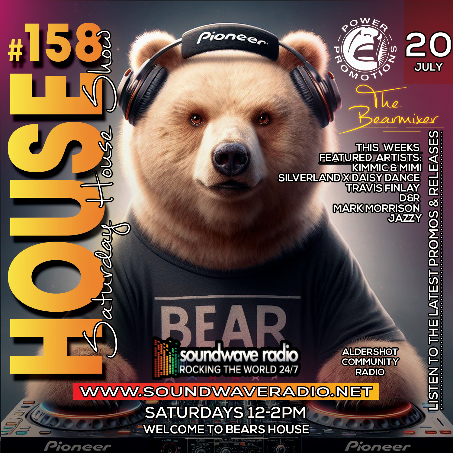 Join me The Bear Mixer every Saturday from 12pm to 2pm for my electrifying “Soundwave Saturday House Show”. Bringing you the hottest house tracks that will make you move your feet and feel the rhythm like never before.