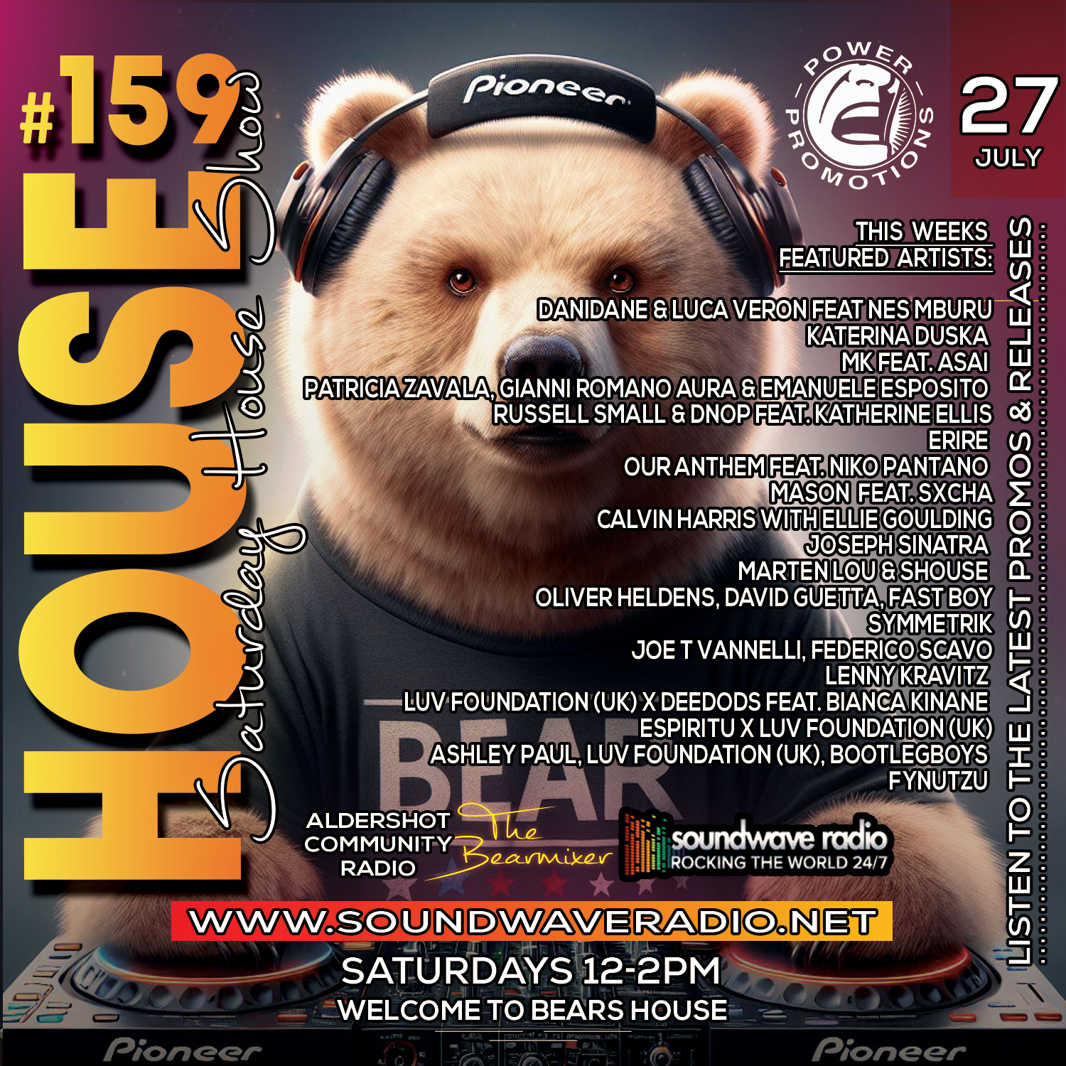 Join me The Bear Mixer every Saturday from 12pm to 2pm for my electrifying “Soundwave Saturday House Show”. Bringing you the hottest house tracks that will make you move your feet and feel the rhythm like never before.