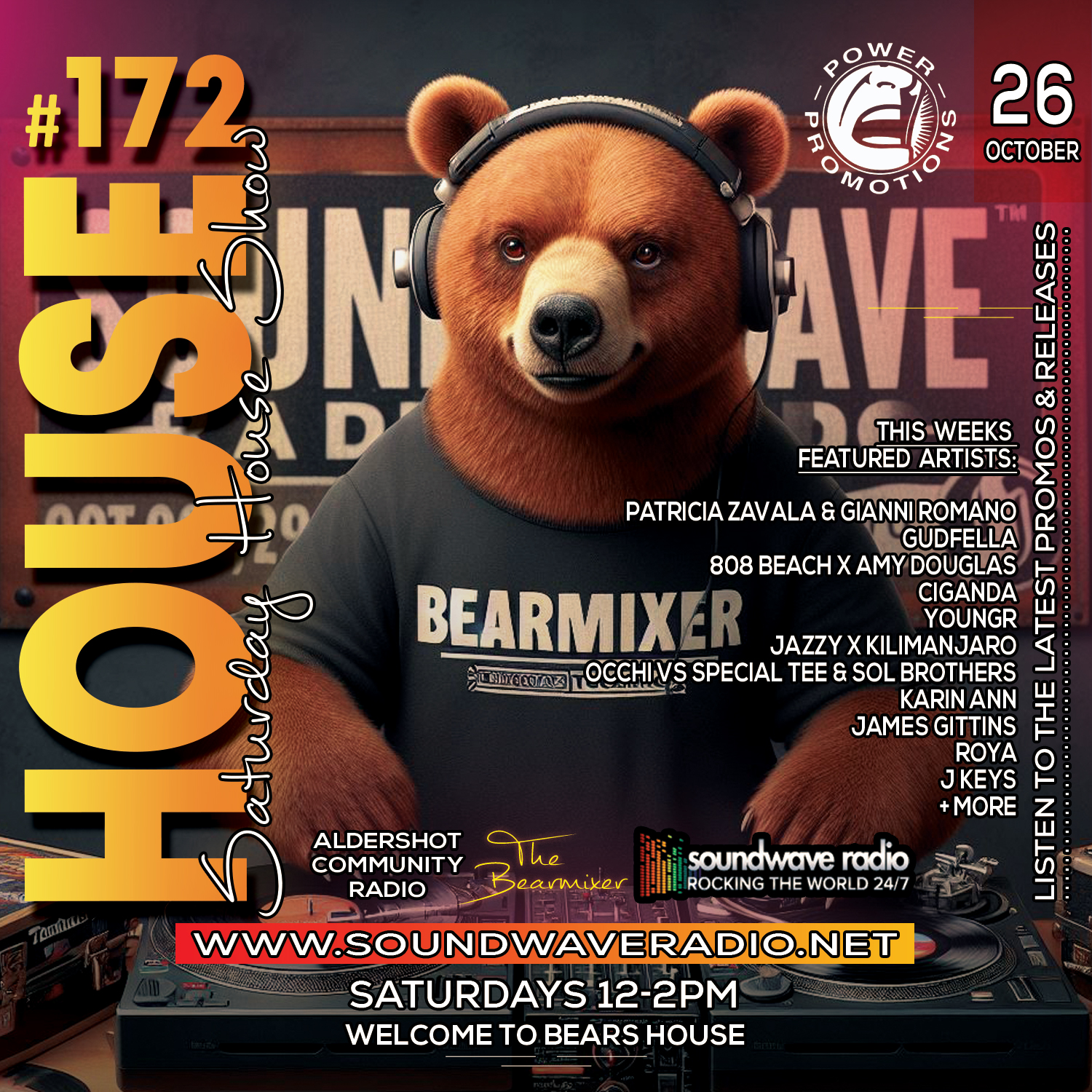Join me The Bear Mixer this Saturday afternoon, 26th October from 12pm to 2pm for my weekly electrifying “Soundwave Saturday House Show”. Bringing you the hottest house tracks that will make you move your feet and feel the rhythm like never before.
