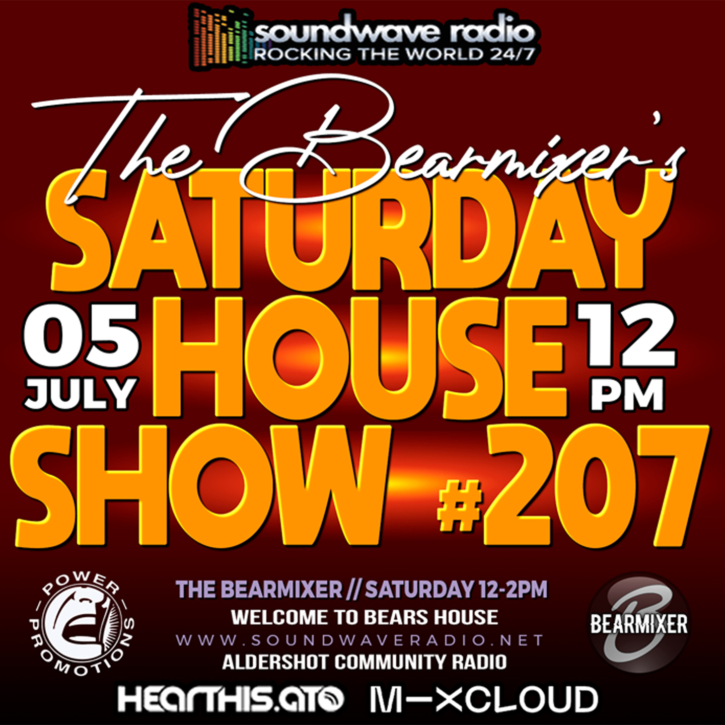 Join me The Bear Mixer this Saturday afternoon, 5th July 2025 from 12pm to 2pm for my weekly electrifying “Soundwave Saturday House Show”. Bringing you the hottest house tracks that will make you move your feet and feel the rhythm like never before.