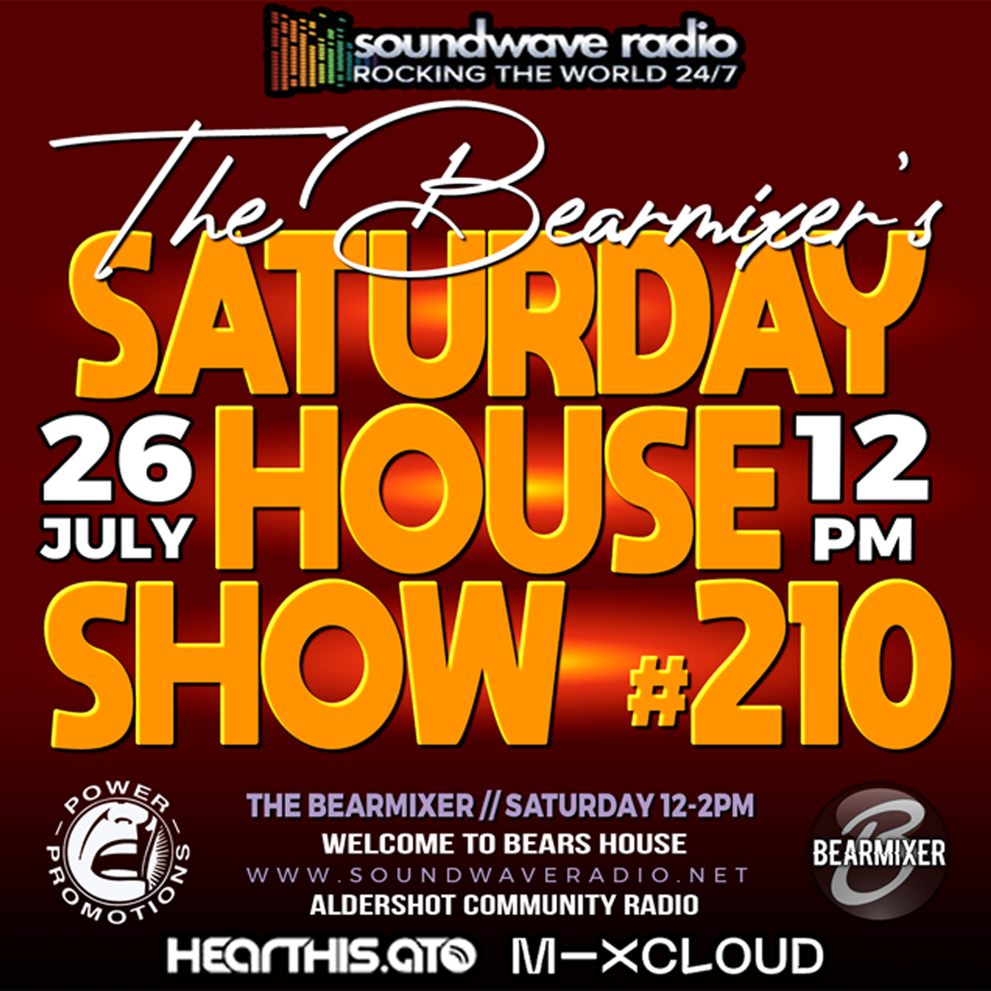 Join me The Bear Mixer this Saturday afternoon, 26th July 2025 from 12pm to 2pm for my weekly electrifying “Soundwave Saturday House Show”. Bringing you the hottest house tracks that will make you move your feet and feel the rhythm like never before.