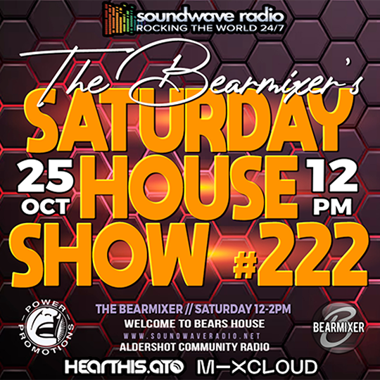 Join me The Bear Mixer this Saturday afternoon, 25th October 2025, 12-2pm for my weekly electrifying “Soundwave Saturday House Show”. Bringing you the hottest house tracks that will make you move your feet and feel the rhythm like never before.