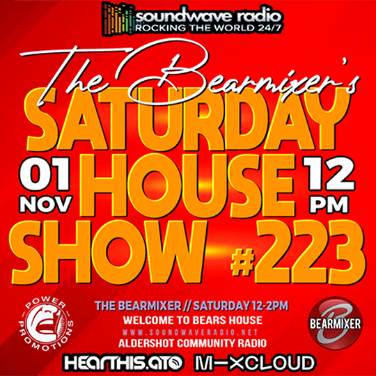 Join me The Bear Mixer this Saturday afternoon, 1st November 2025, 12-2pm for my weekly electrifying “Soundwave Saturday House Show”. Bringing you the hottest house tracks that will make you move your feet and feel the rhythm like never before.