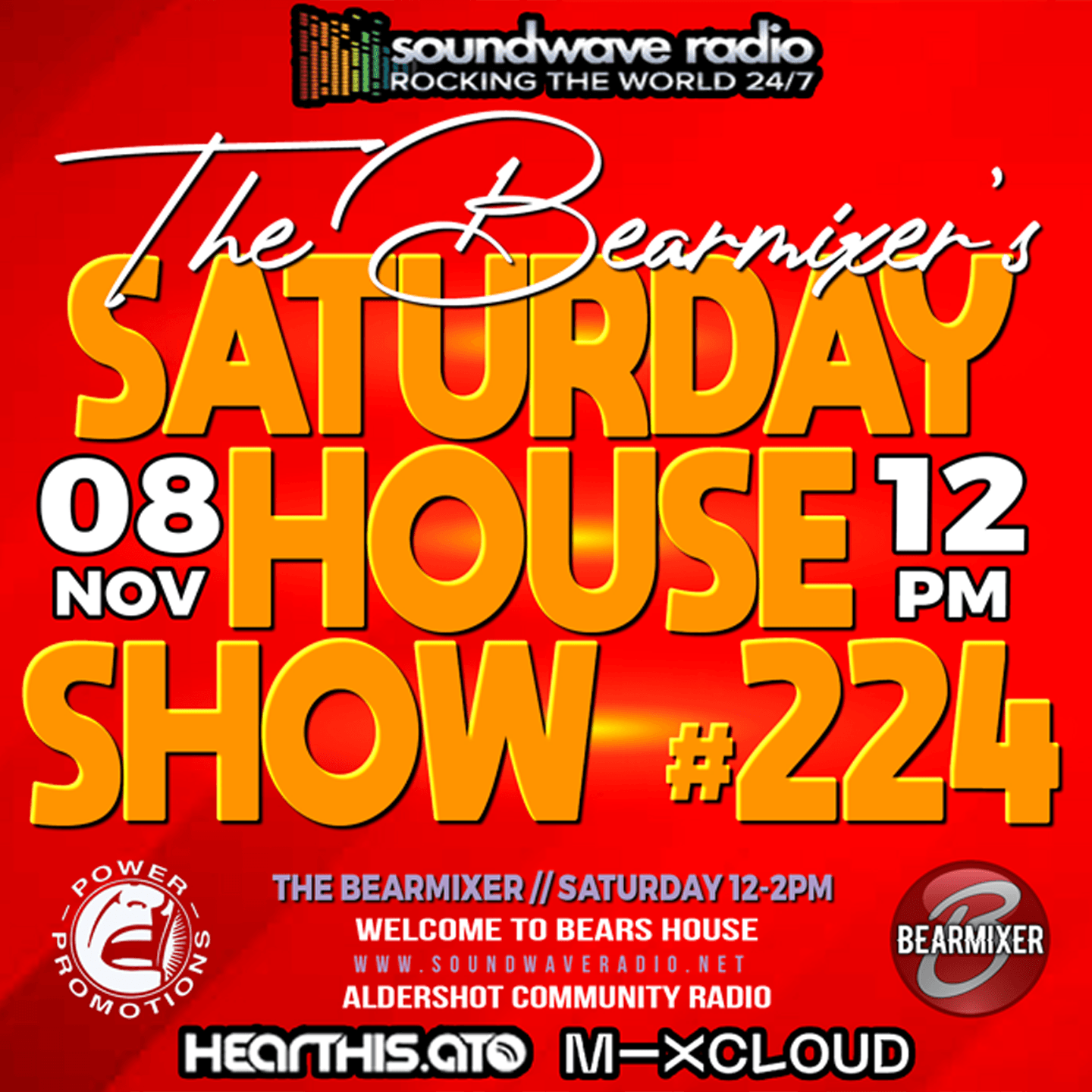 Join me The Bear Mixer this Saturday afternoon, 8th November 2025, 12-2pm for my weekly electrifying “Soundwave Saturday House Show”. Bringing you the hottest house tracks that will make you move your feet and feel the rhythm like never before.