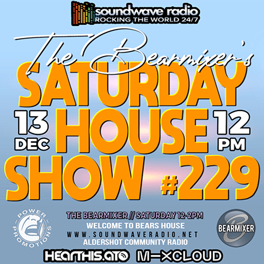 Join me The Bear Mixer this Saturday afternoon, 13th December 2025,12-2pm for my weekly electrifying “Soundwave Saturday House Show”. Bringing you the hottest house tracks that will make you move your feet and feel the rhythm like never before.